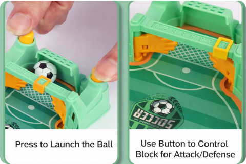 Spring-Loaded Launch Buttons: Press to kick the ball—easy to learn, exciting to play.