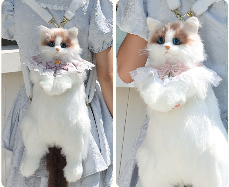 👍Handcrafted Lifelike Cat Backpack- Each cat backpack features unique facial expressions and poses, making it a one-of-a-kind accessory for you to own. ✅Crafted by skilled artisans, every realistic animal girls backpack is meticulously sewn by hand, from carefully selected materials to precise cutting and stitching.