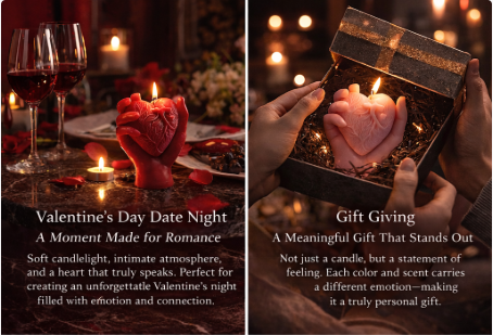 The lifelike anatomical heart shape, paired with delicate textures and soft candlelight, integrates romance, strength, and sensibility, giving the space an instant soul.