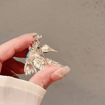 Featuring a graceful flying bird motif, this brooch adds a refined, feminine touch to coats, blazers, scarves, handbags, and dresses.