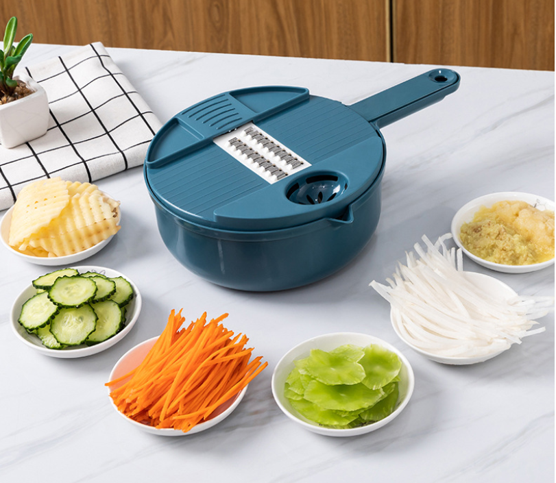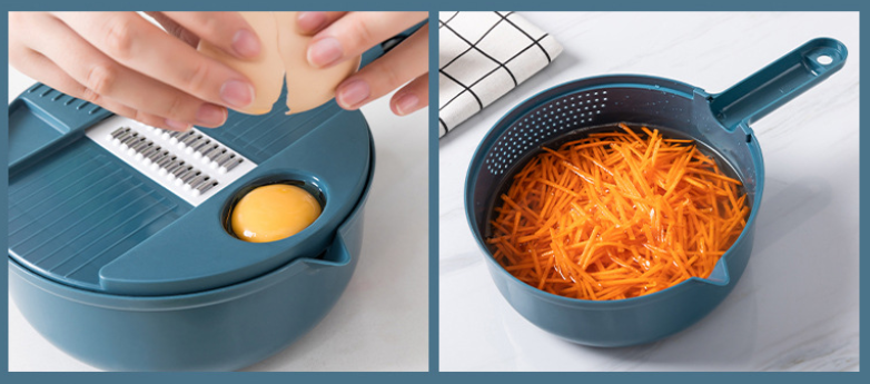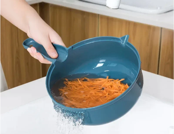 This multi-function kitchen set combines slicing, grating, rinsing, and serving into one compact system—perfect for everyday cooking.