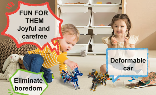 【Social Promotion】: Encourage social interaction during play. Friends can take turns crashing their cars, like the transforming dinosaur car, and experiencing the magic of transforming together, fostering teamwork and camaraderie.