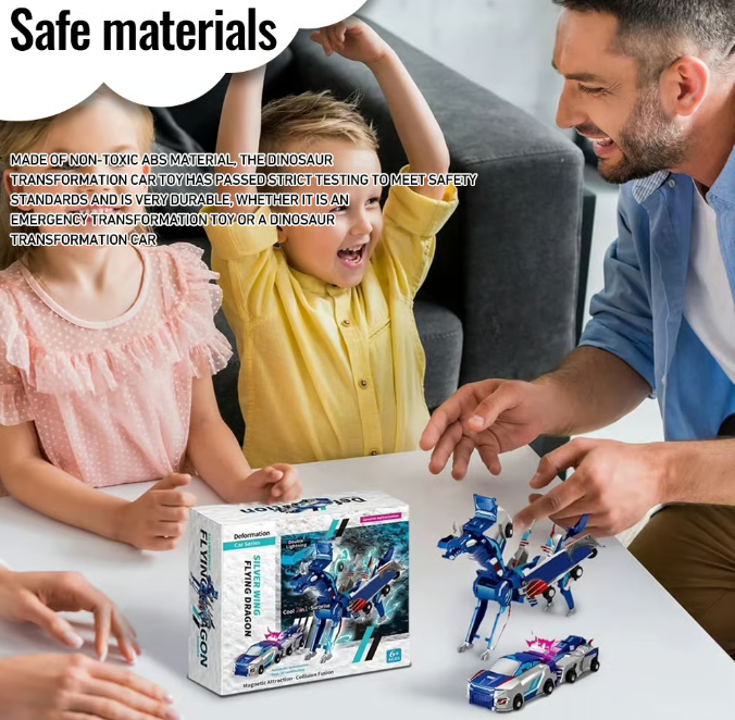 【Safety】: Crafted from non-toxic plastic material, the dinosaur Transformation car toy passes strict tests to meet safety standards and is highly durable, whether it's theautomatic Transformation toy or the dinosaur Transformation car.