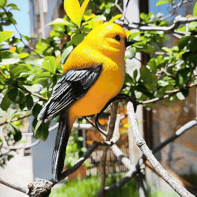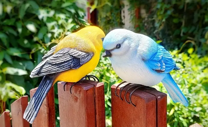 Realistic design with full attention to detail: Using high fidelity technology, the texture and body features of bird feathers are restored. The blue gradient feather color and the yellow dynamic expression make it seem like they will flap their wings and sing in the next second, injecting fresh vitality into the garden.