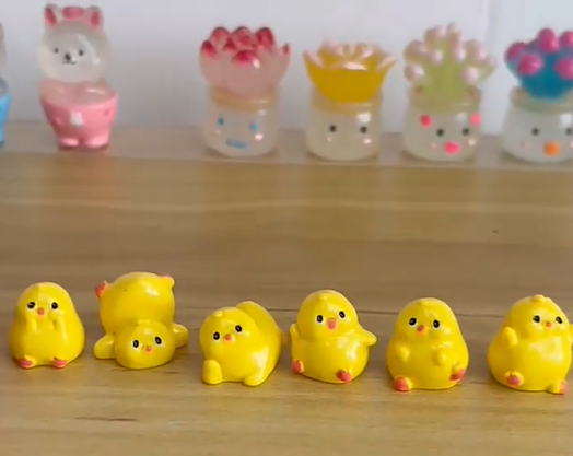 | Home Decor: Perfect for placing on bedside tables, vanity tables in bedrooms, or coffee tables and TV stands in living rooms, these charming little chicken figurines add a warm and adorable touch to any home environment. Office Decor: Place them on your desk or bookshelf corner. During breaks from work or study, these cute little chicken figurines can help relieve stress and bring a smile to your face. Gift Giving: Perfect as birthday or holiday gifts for friends or children who love cute little items, or as a token of appreciation, these figurines convey heartfelt sentiments. Craft Materials: Ideal for handmade projects such as phone cases, keychains, or photo frames, allowing you to unleash your creativity and create one-of-a-kind handmade pieces. |