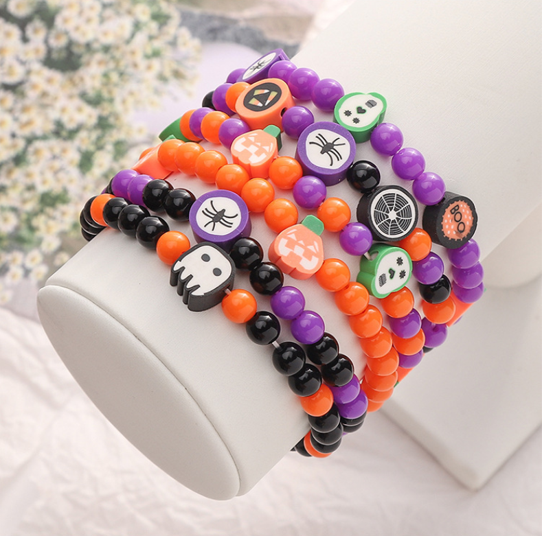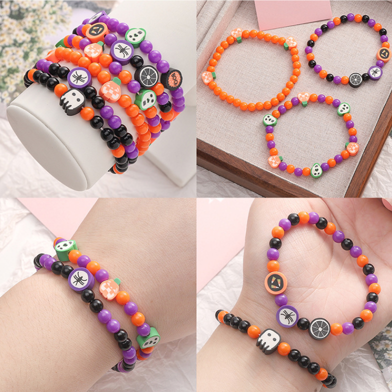 Halloween-themed materials, unique festive atmosphere This bracelet is a limited edition Halloween design, brimming with a rich festive atmosphere. The bracelet is adorned with various Halloween-themed beads, such as ghosts, jack-o'-lanterns, and spider webs, each meticulously designed to look lifelike.