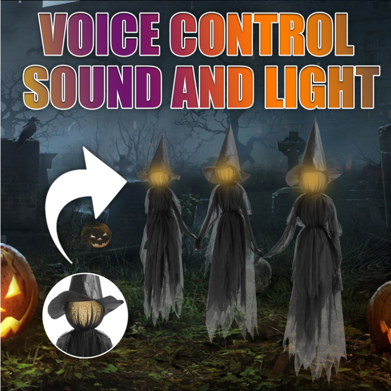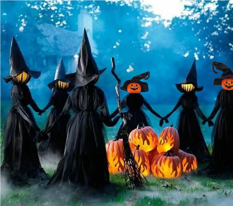 Classic witch design (pointed hat, black robe, and glowing pumpkin head) with an eerie hand-holding pose and a moonlit night background. Hang them in the yard or porch to instantly transform the space into a “Witch Gathering” film set. Mysterious by day, spine-chilling by night (glowing version), neighbors passing by will think they've stumbled into a horror movie, instantly capturing the Halloween underworld aesthetic.🎃