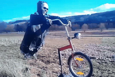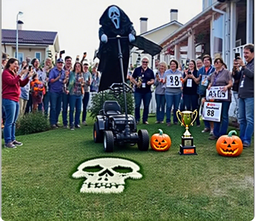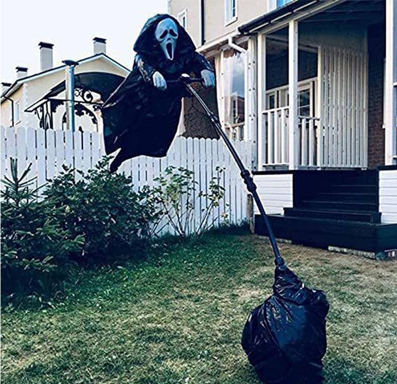 Daytime: The flowing black robe and skull face create an oppressive atmosphere, causing neighbors to take a detour when walking their dogs👻