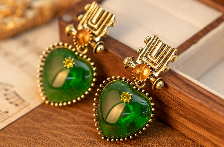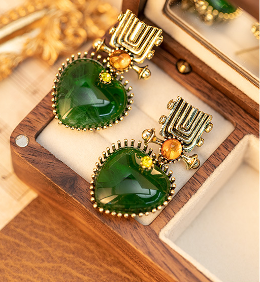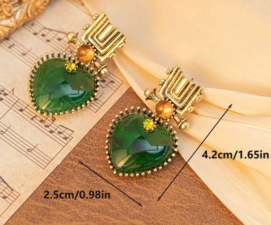 Featuring a heart-shaped emerald as the centerpiece, paired with metal carvings and contrasting small gemstones, this piece recreates the opulence of vintage court jewelry, satisfying the needs of retro and vintage enthusiasts. It is suitable for formal occasions such as banquets and weddings, effortlessly creating an air of elegance.