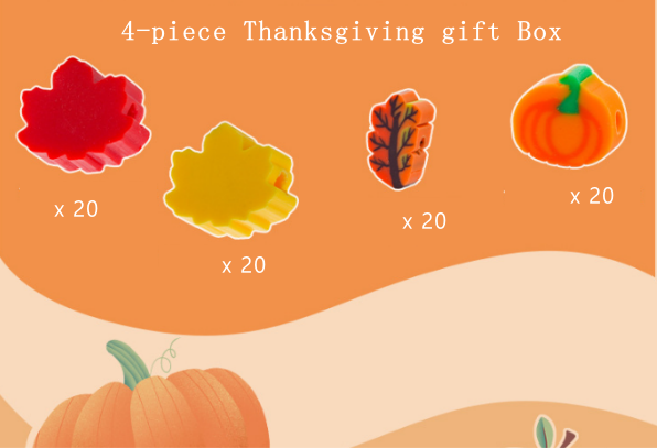 | Specifications | Thanksgiving Set 4-Piece | 2.8 inches long, 2.55 inches wide, 0.62 inches high, 75.920 square centimeters in area, weighing 40g |