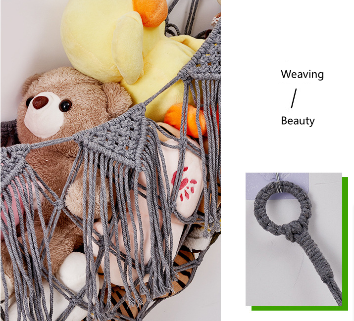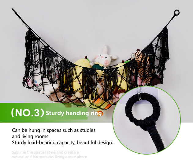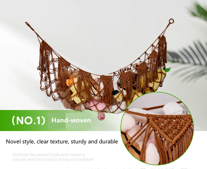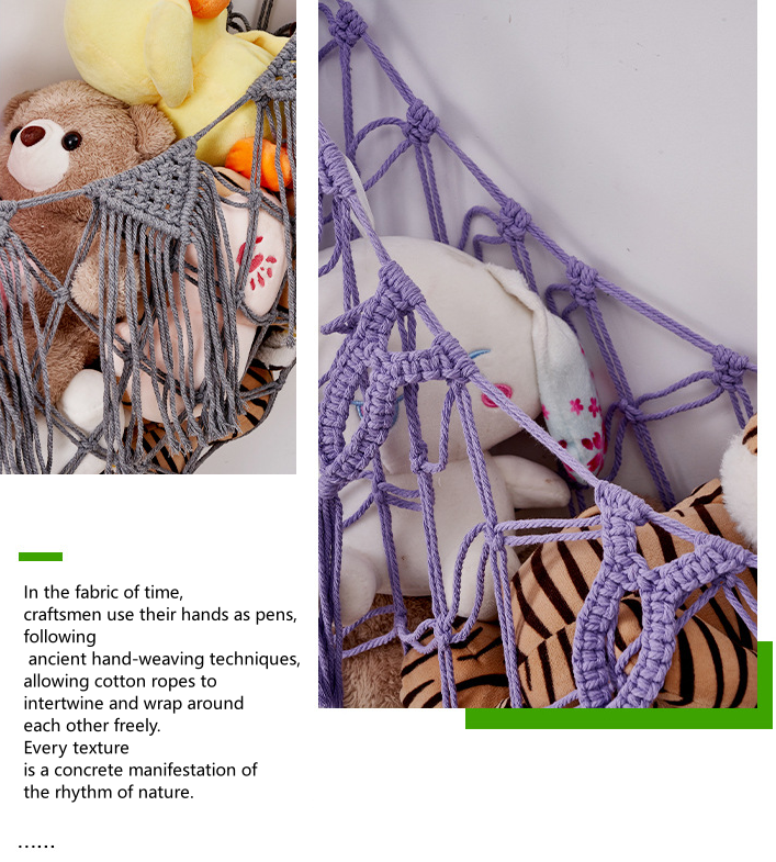 | Hand-woven toy net hammock, made using traditional hand-weaving techniques, with cotton ropes intertwined to elevate the style of the space and create a natural and harmonious living atmosphere. |