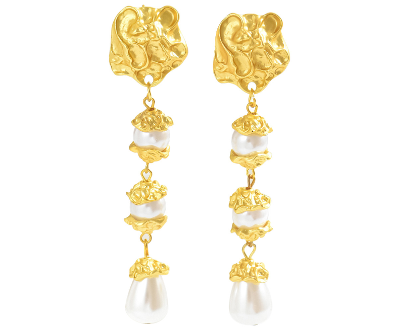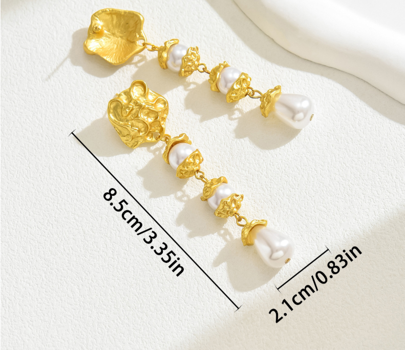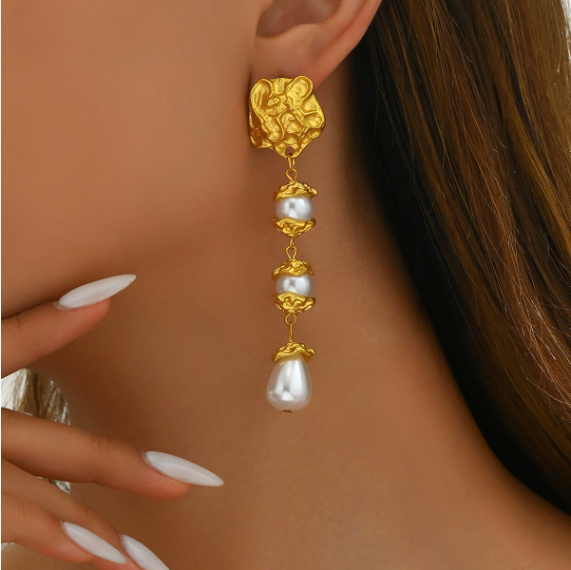 Combining irregular metal relief designs with pearls, this earring breaks away from the monotony of conventional ear jewelry. The metal components resemble abstract art sculptures, offering a unique and distinctive aesthetic, while the pearls add a touch of warmth, blending strength and softness. This design is perfect for those seeking a personalized, artistic style.